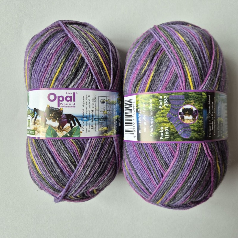 Opal is a German brand of high quality sock yarn. Regenwald collection is dedicated to different animals in the jungle. Percent of profits goes to support rainforest.